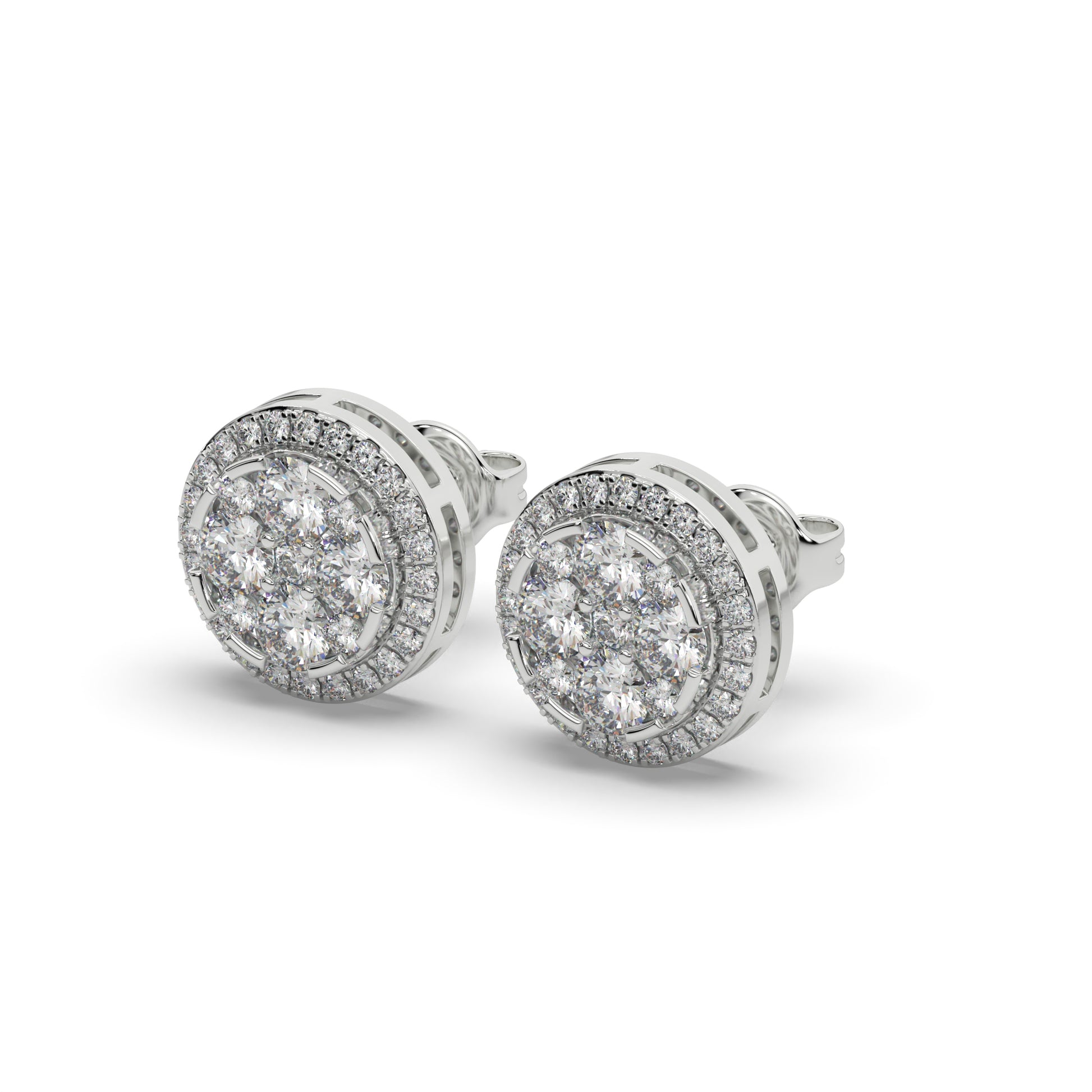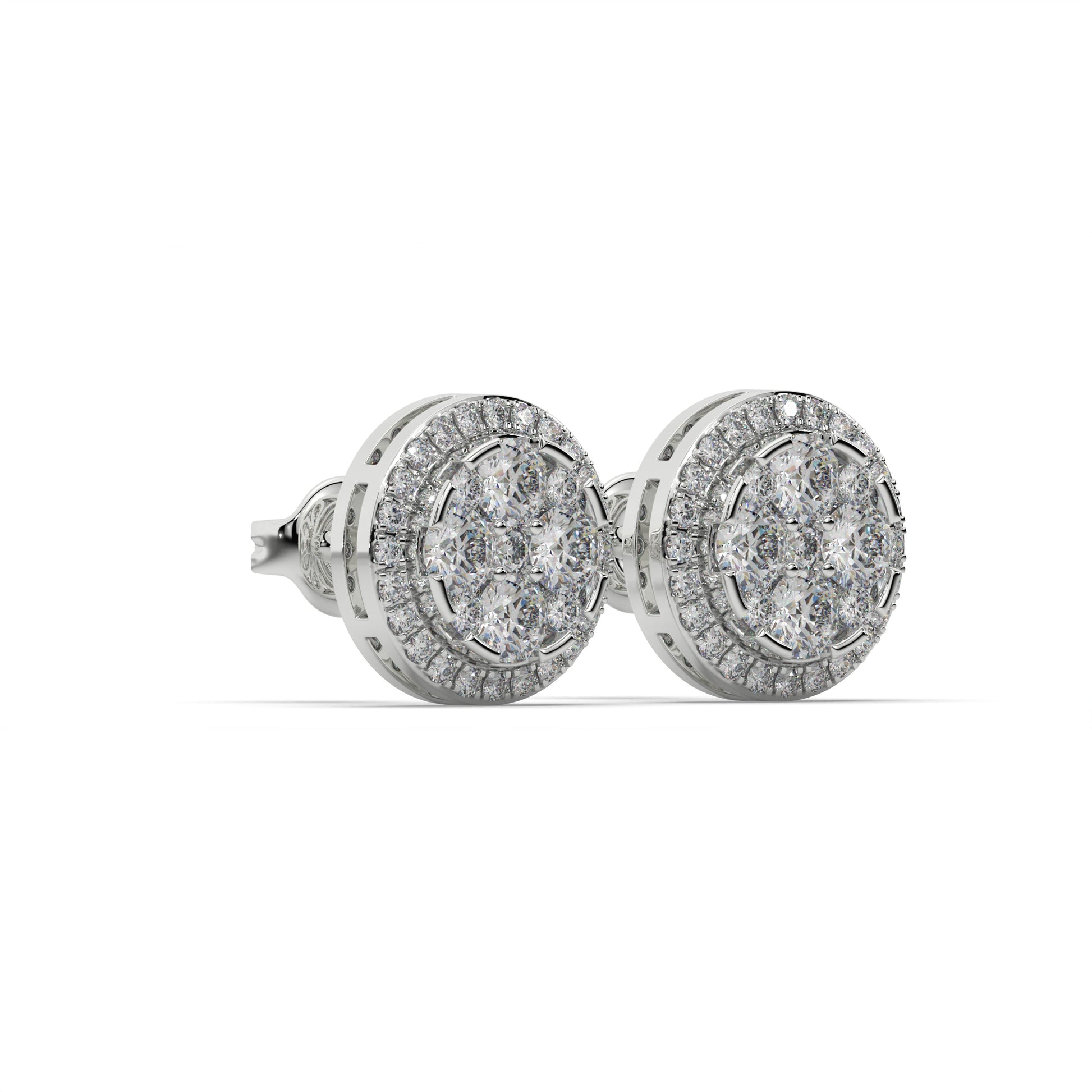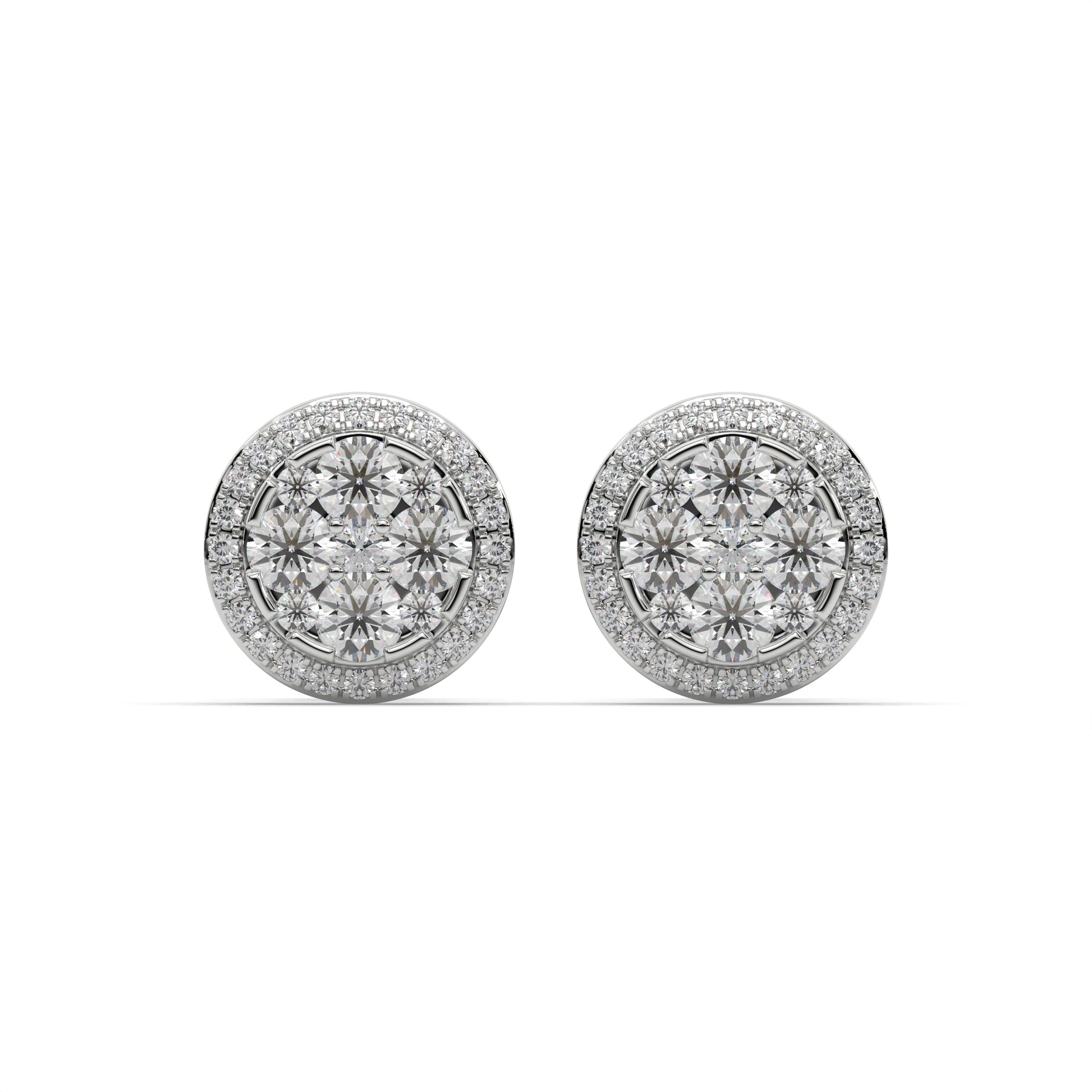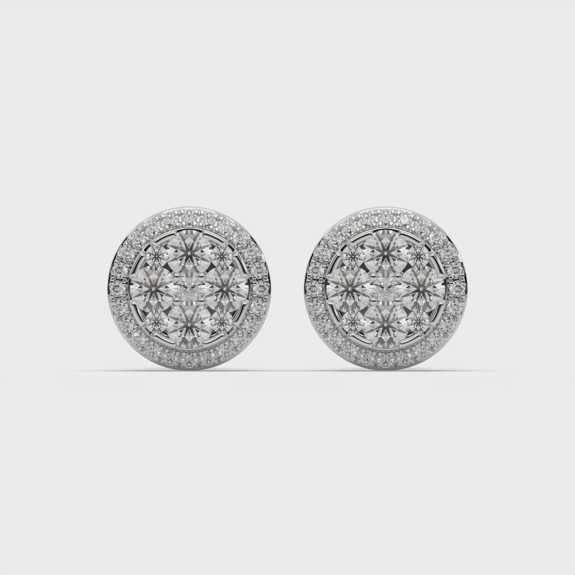 1ct Round Diamonds Cluster Halo Stud Earrings,14kt and 18kt Solid White Gold,Danice Studs